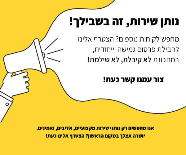 - עובדים בשיטת לא קיבלת לא שילמת (משלמים רק על לקוחות שמקבלים).