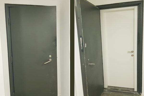 הוצאת דלת ממ"ד ובמקומה התקנת דלת מעץ לממד. כולל מחיר הדלת.